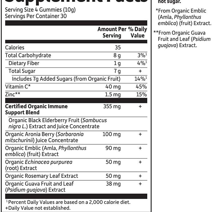 Immune Support Supplement with Organic Fruit & Herbal Blend of Elderberry, Echinacea, Zinc, Vitamin C – 120 Vegan, Non-GMO & Gluten Free Gummies